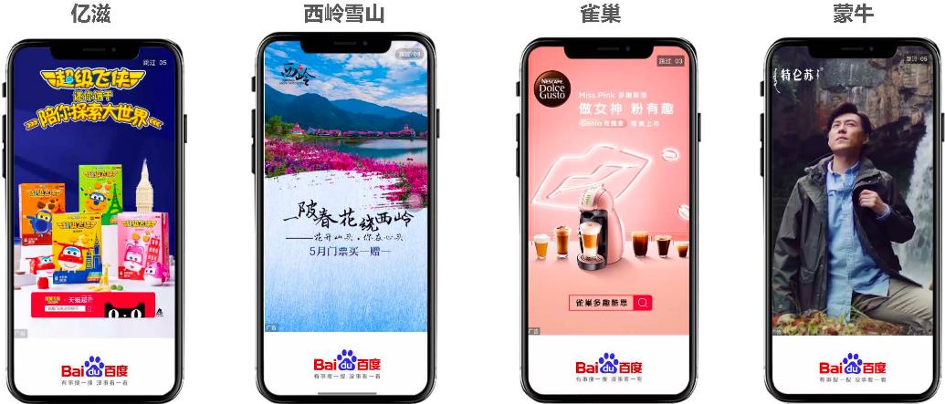 百度開(kāi)屏廣告有四種展現(xiàn)形式,分別是3-5s靜態(tài)全屏/非全屏樣式、動(dòng)態(tài)視頻全屏/非全屏樣式、搖一搖樣式和九宮格樣式。采用全屏覆蓋的展示形式可以集中用戶的注意力,吸引用戶眼球,提高點(diǎn)擊率。