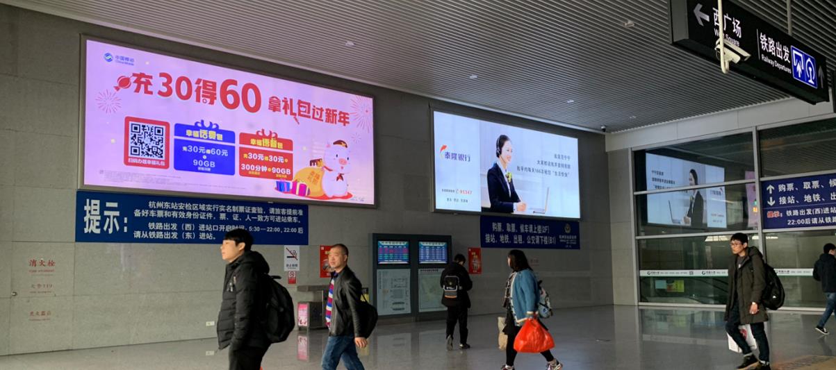 杭州東站廣告類型:杭州東高鐵站廣告,杭州東高鐵站進(jìn)站廣告,杭州南高鐵站售票廳燈箱廣告,杭州東高鐵站出入口廣告,杭州東站led廣告,杭州東高鐵站扶梯廣告,杭州東高鐵站南廣場出口廣告,杭州東高鐵站北廣場出口廣告