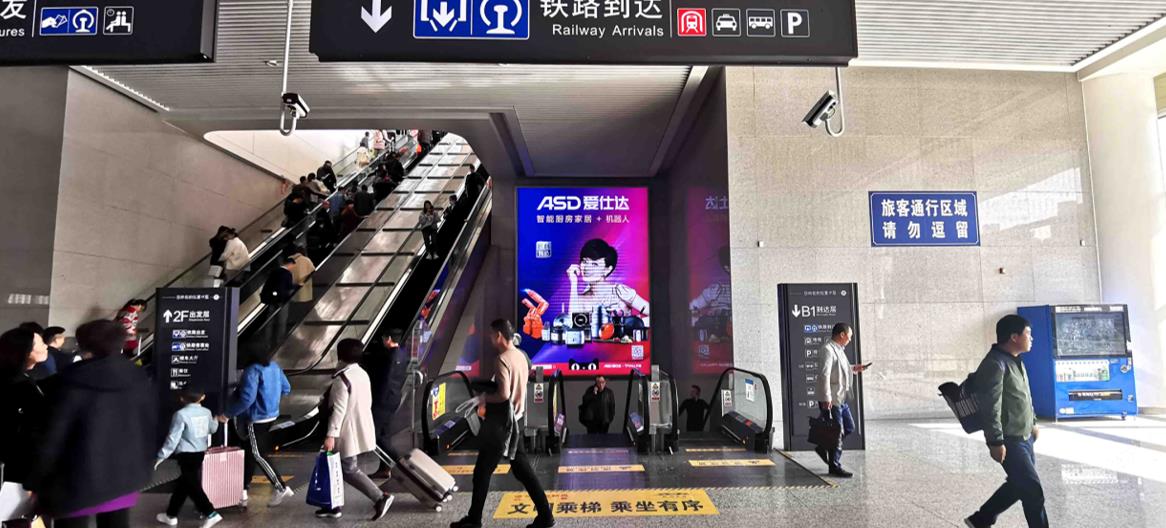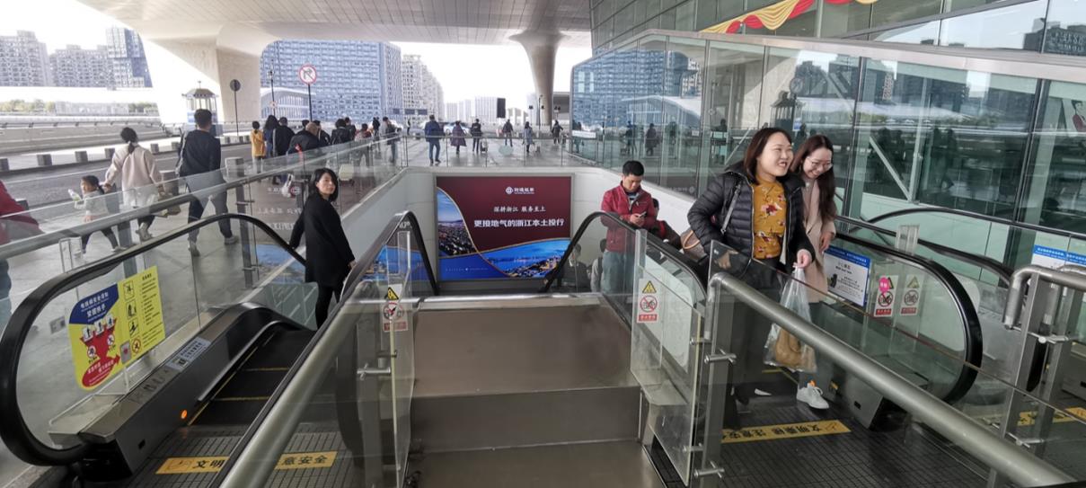 杭州東站廣告-出發(fā)層扶梯轉(zhuǎn)角一層梯楣燈箱