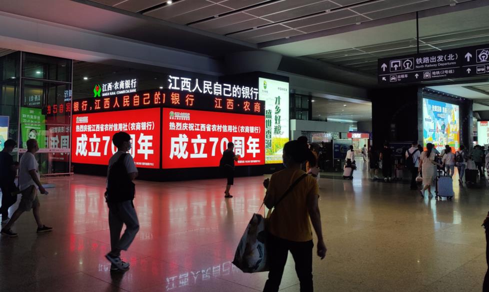 南昌西站出站大廳落地?zé)粝湔刮粡V告