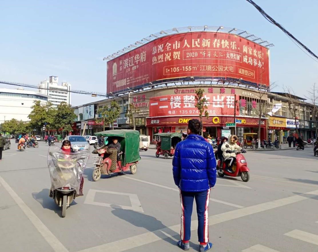 老河口中心城區(qū)武商購物廣場旁,廣告位正處于交叉口位置,人流車流匯集地段。
