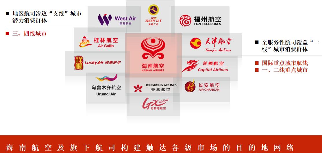 海航集團(tuán)旗下參控股航空公司16家,參與管理機(jī)場(chǎng)13家,機(jī)隊(duì)規(guī)模近900架;開(kāi)通國(guó)內(nèi)外航線(xiàn)約2600條,通航城市240余個(gè),年旅客運(yùn)輸量逾1.44億人次。