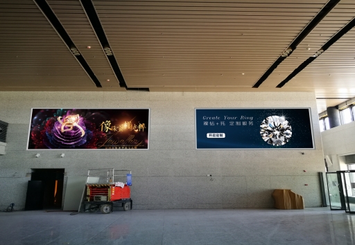 一層行李廳,墻面燈箱,2個,外框尺寸3.7m*2.4m,畫面尺寸3.55m*2.25m。
