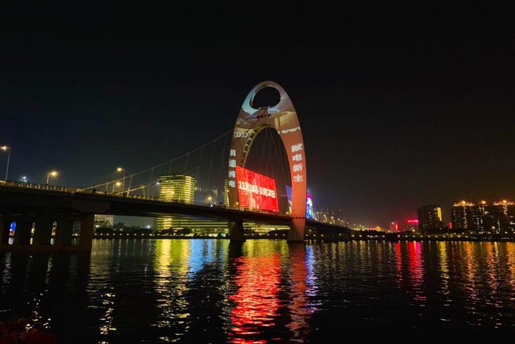 城市地標(biāo)燈光秀廣告之廣州地標(biāo)廣告,廣州獵德大橋投影廣告