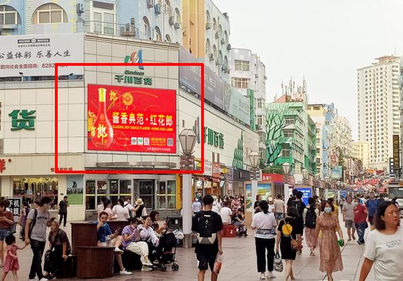 1、屏幕位于臺東三路步行街的中心位置,對面利群商廈,緊鄰萬達廣場,人流量巨大,屏幕所處位置十分明顯,位于十字路口方向。