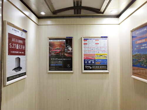 媒體規(guī)格:豎:45(H)× 60(W)cm 畫面尺寸:豎:43(H)× 56(W)cm 媒體位置:電梯轎廂內(nèi)