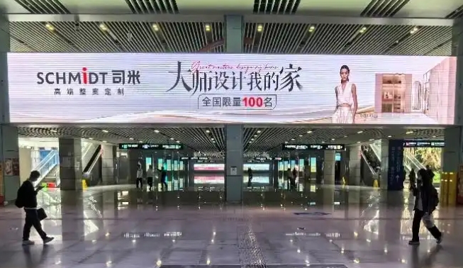 今年51假期,高鐵旅客流量再創歷史新高,SCHMIDT司米品牌傳播借勢而上。基于高鐵廣告傳播高覆蓋面與權威性等特征,在交通樞紐高端媒體上展開戰略式滲透布局,進一步加深全國消費者對SCHMIDT司米“高端整案定制”品牌定位的認知與了解。
