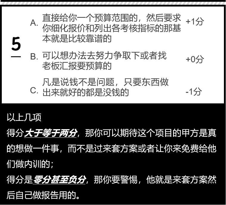 詢問甲方預算時候,甲方的初步回答也能大致了解一些情況,